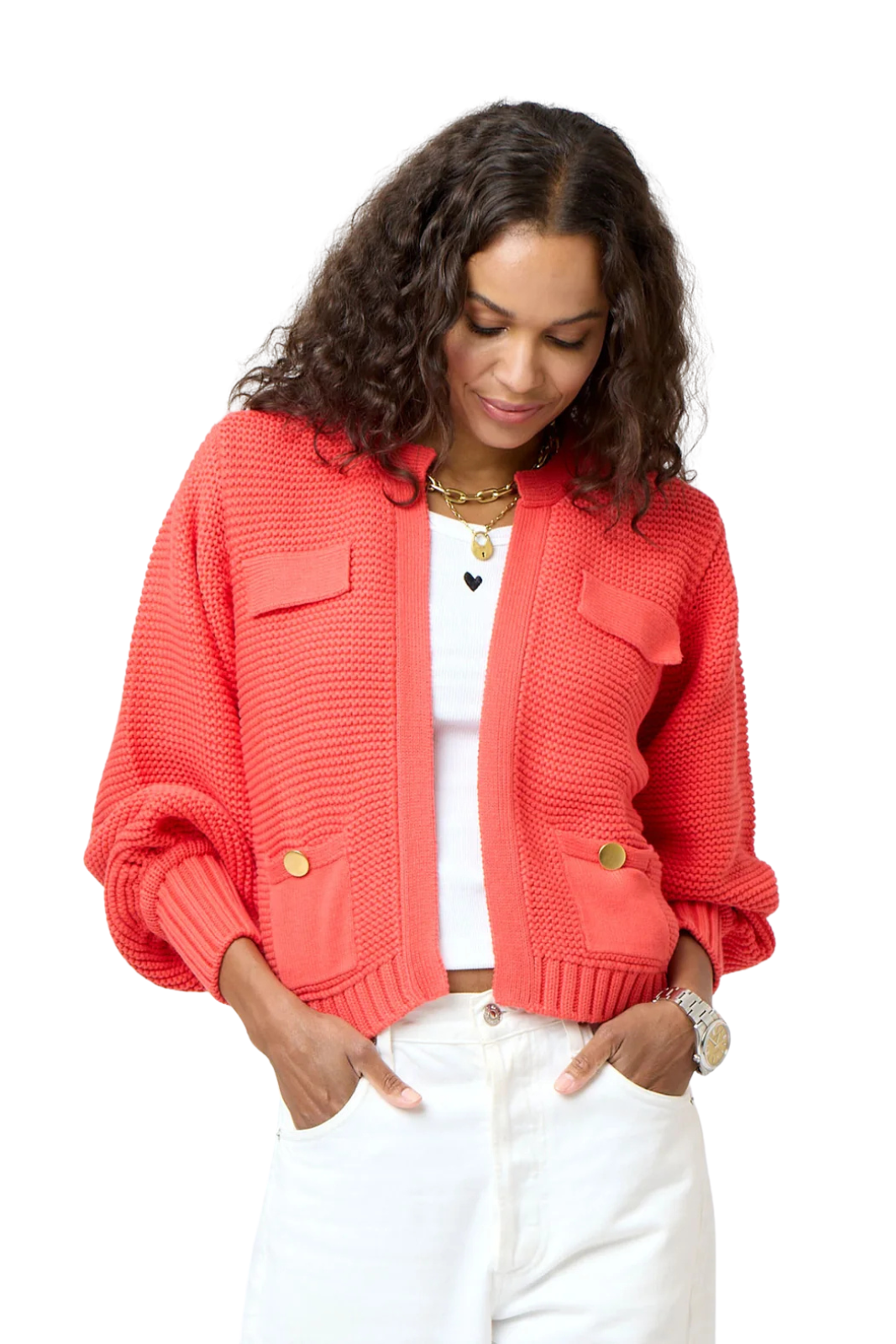 A fresh addition to the Beau-lero family, the Alaina Cardigan is a versatile layering piece crafted from soft 100% cotton knit. Lightweight yet cozy, it’s the perfect top layer to take you from day to evening with effortless style.
