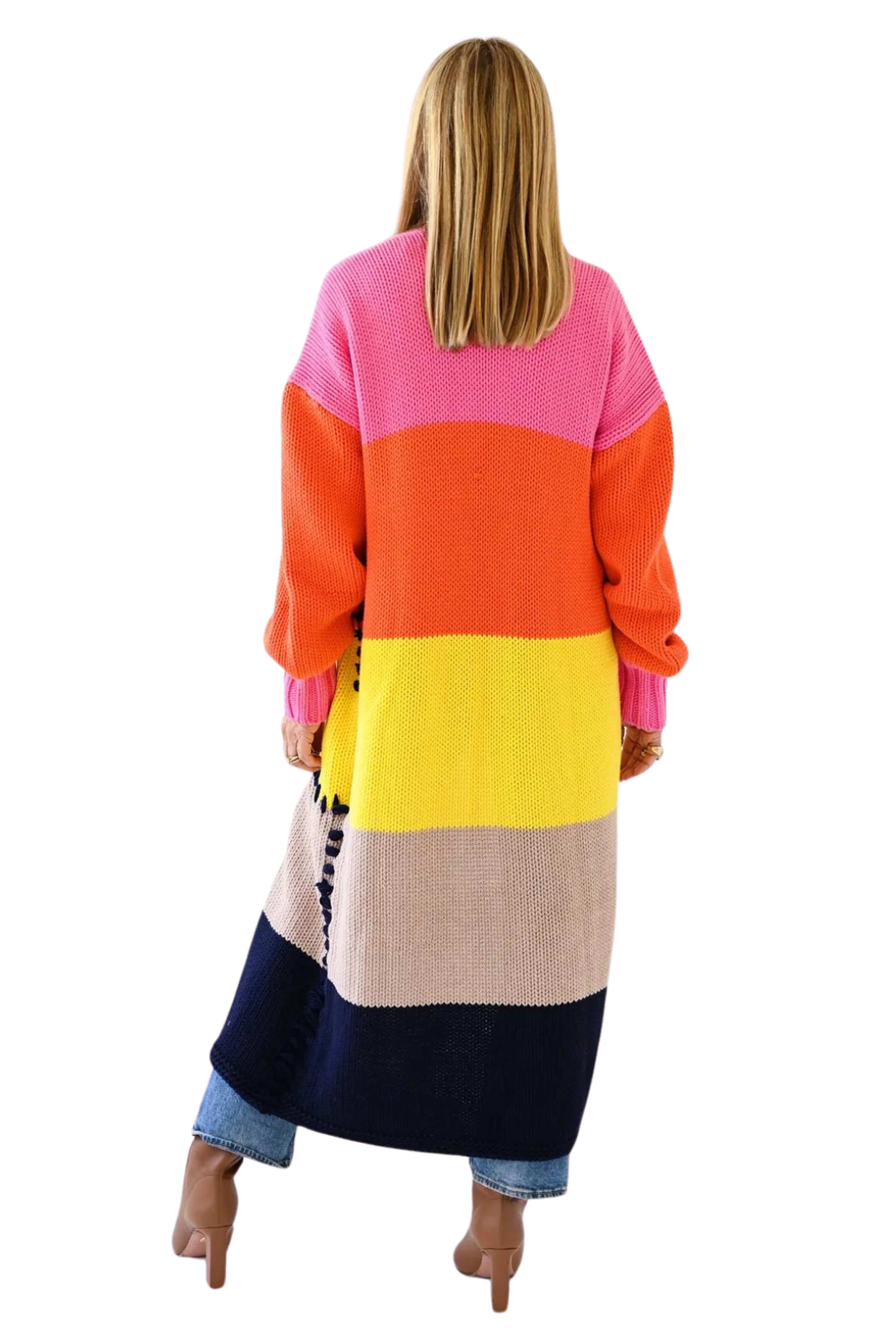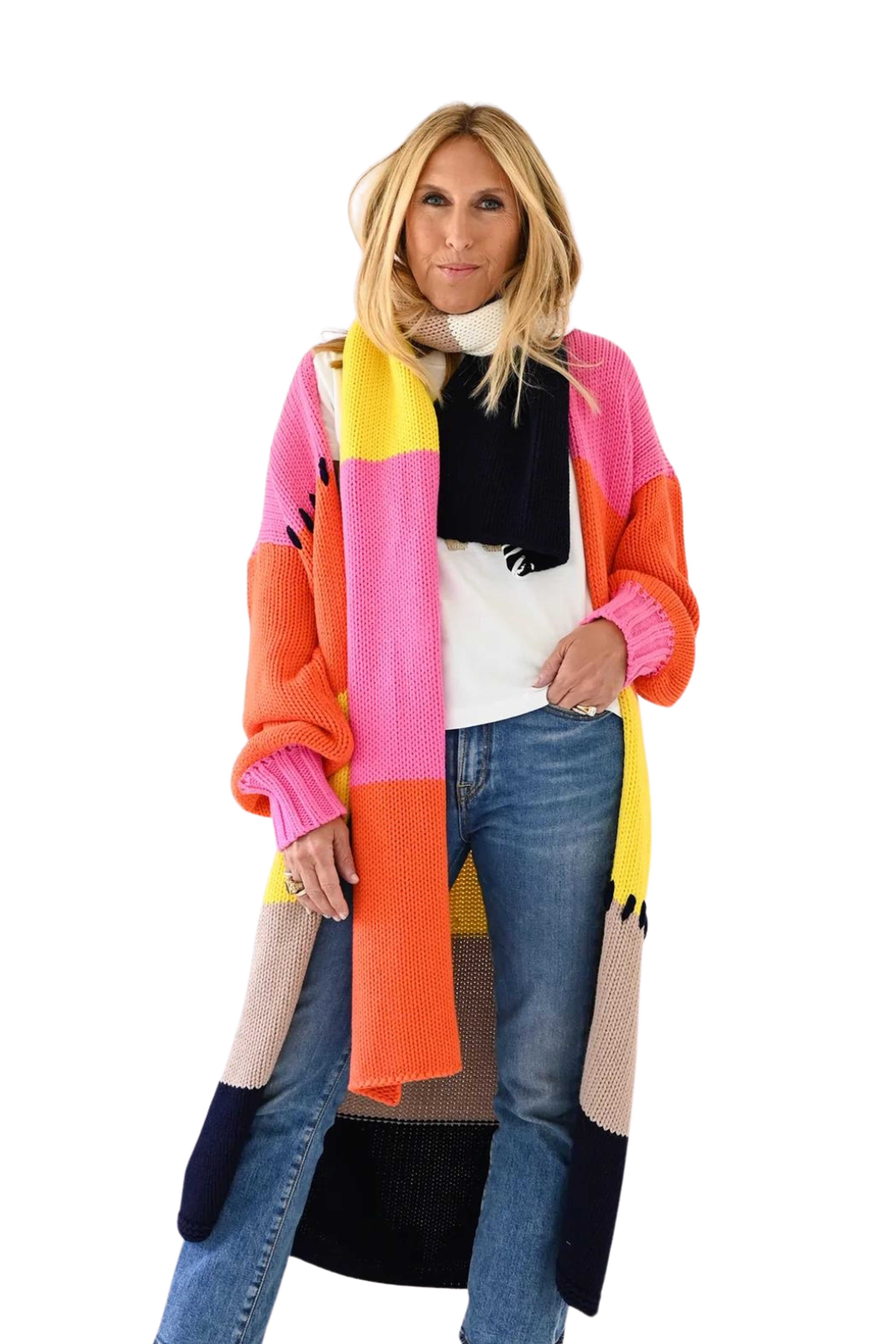 Meet the Alaina Duster in Cabin Stripe! We're enchanted by this cotton-cashmere blend duster, adorned with hand whip-stitch details throughout. Versatile and suitable for all climates, this piece effortlessly complements a variety of outfits.
