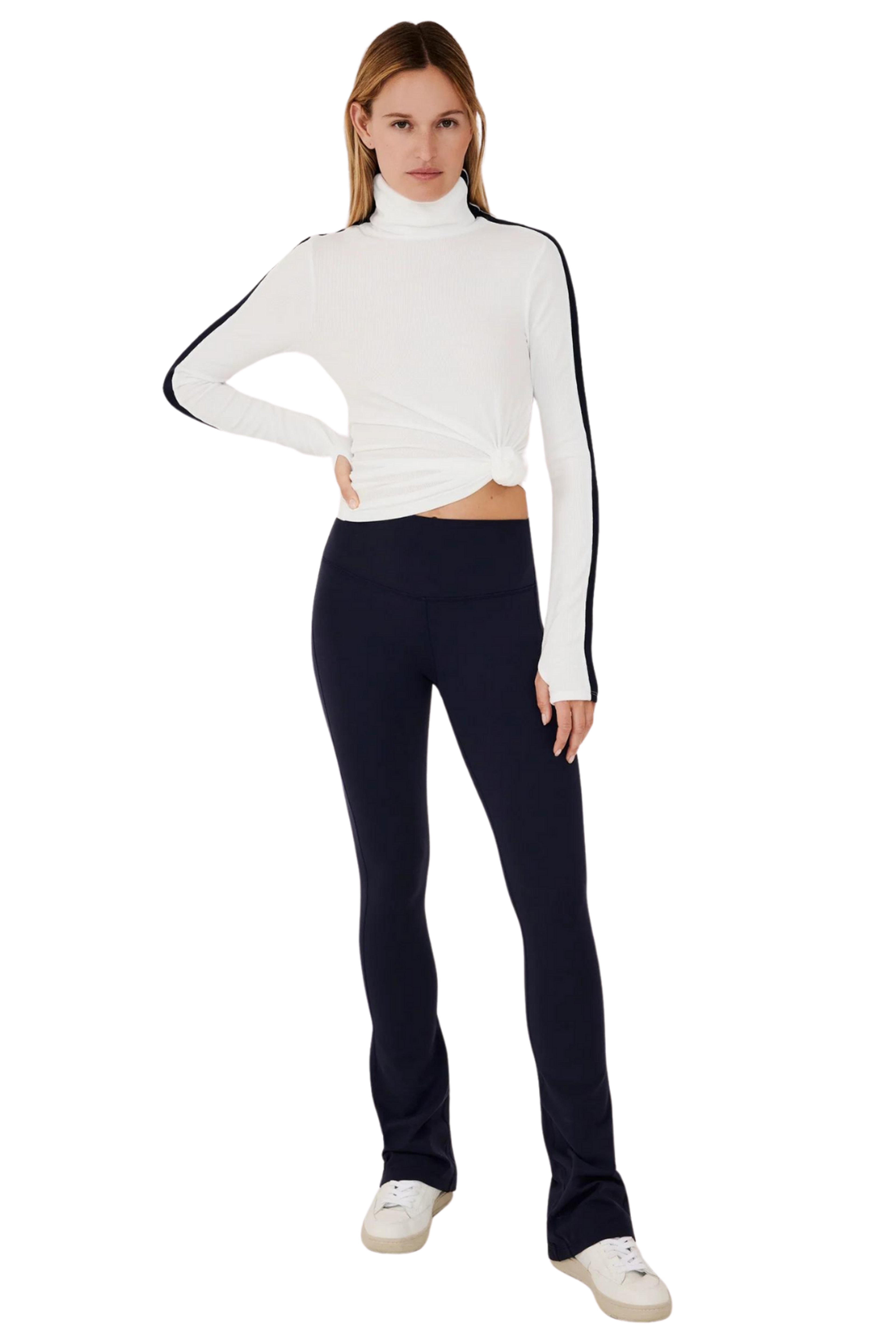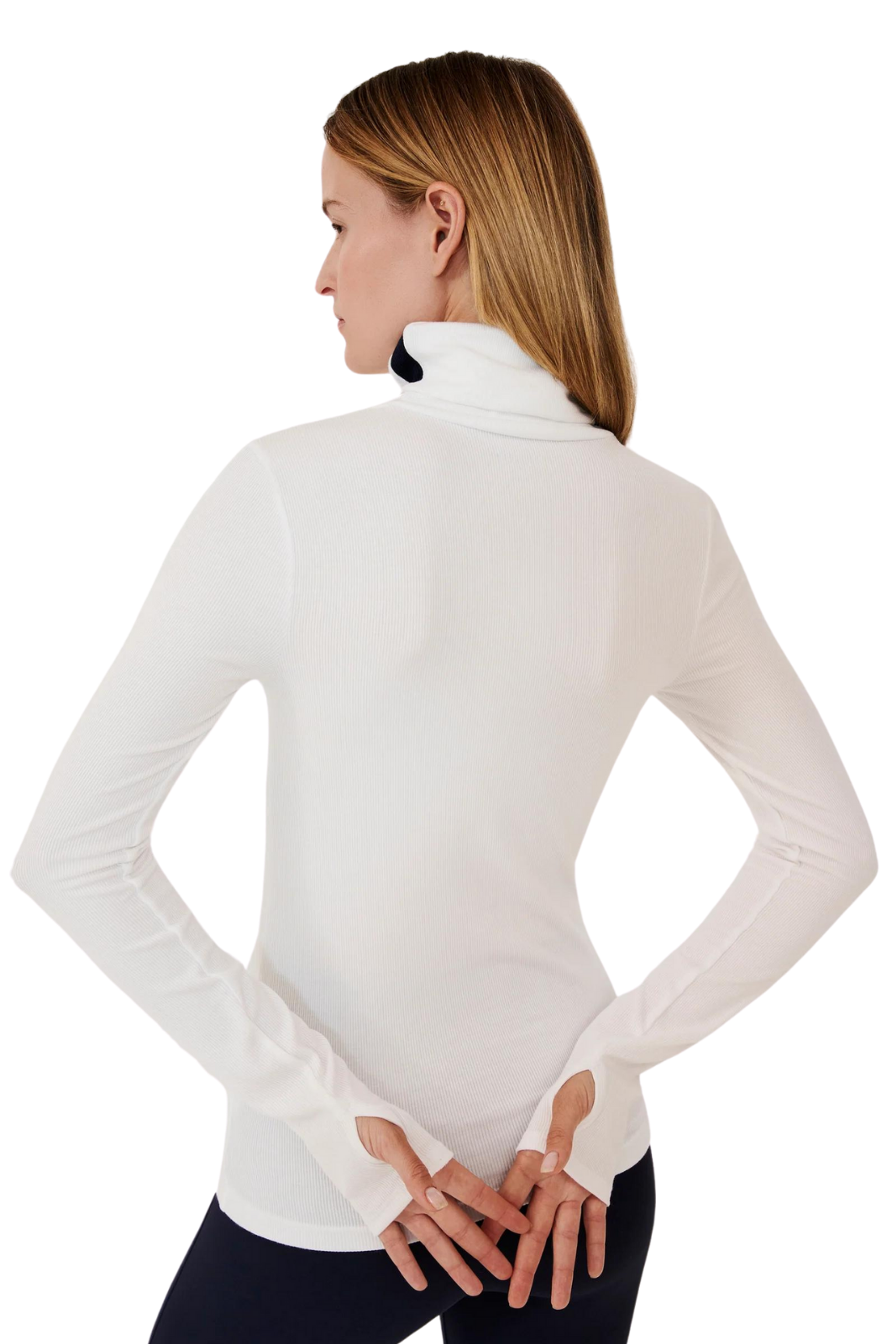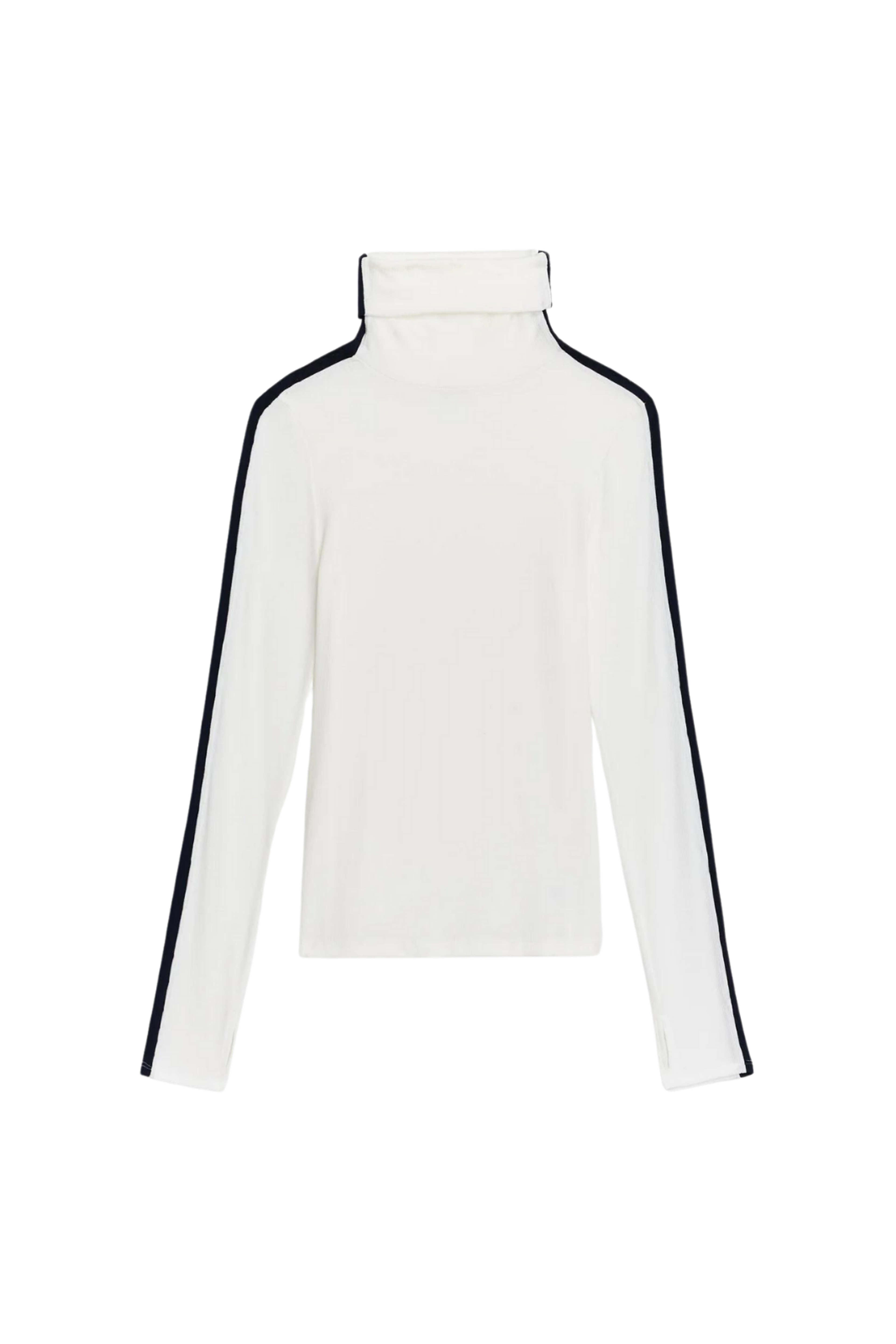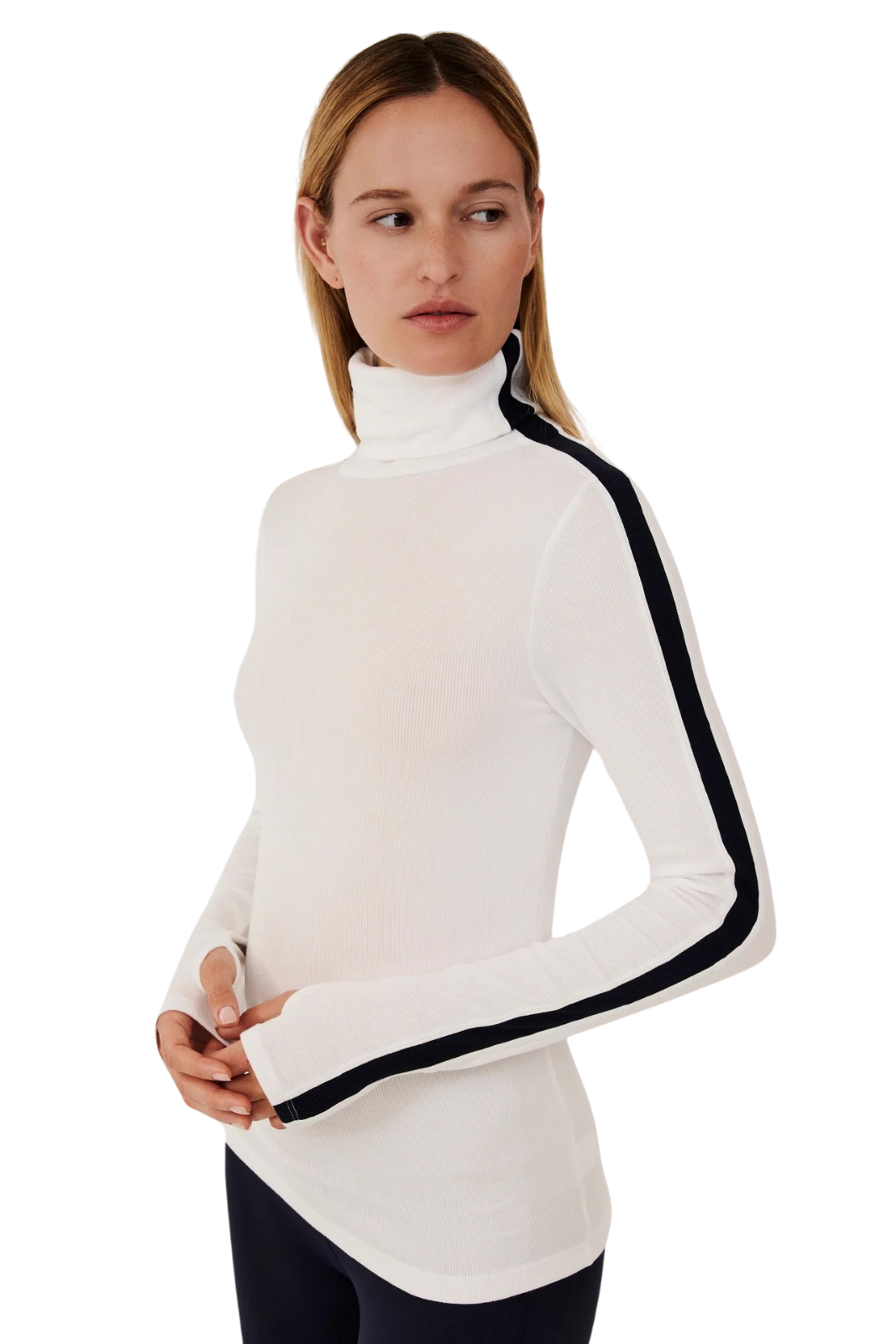 Experience extended coverage with the highly sought-after Jackson Rib Turtleneck in a longer version, designed to gracefully sit at the hip on most bodies. Crafted from supremely soft 2x1 baby rib, with neck to cuff sleeve stripes, it exudes a touch of ski-inspired elegance.