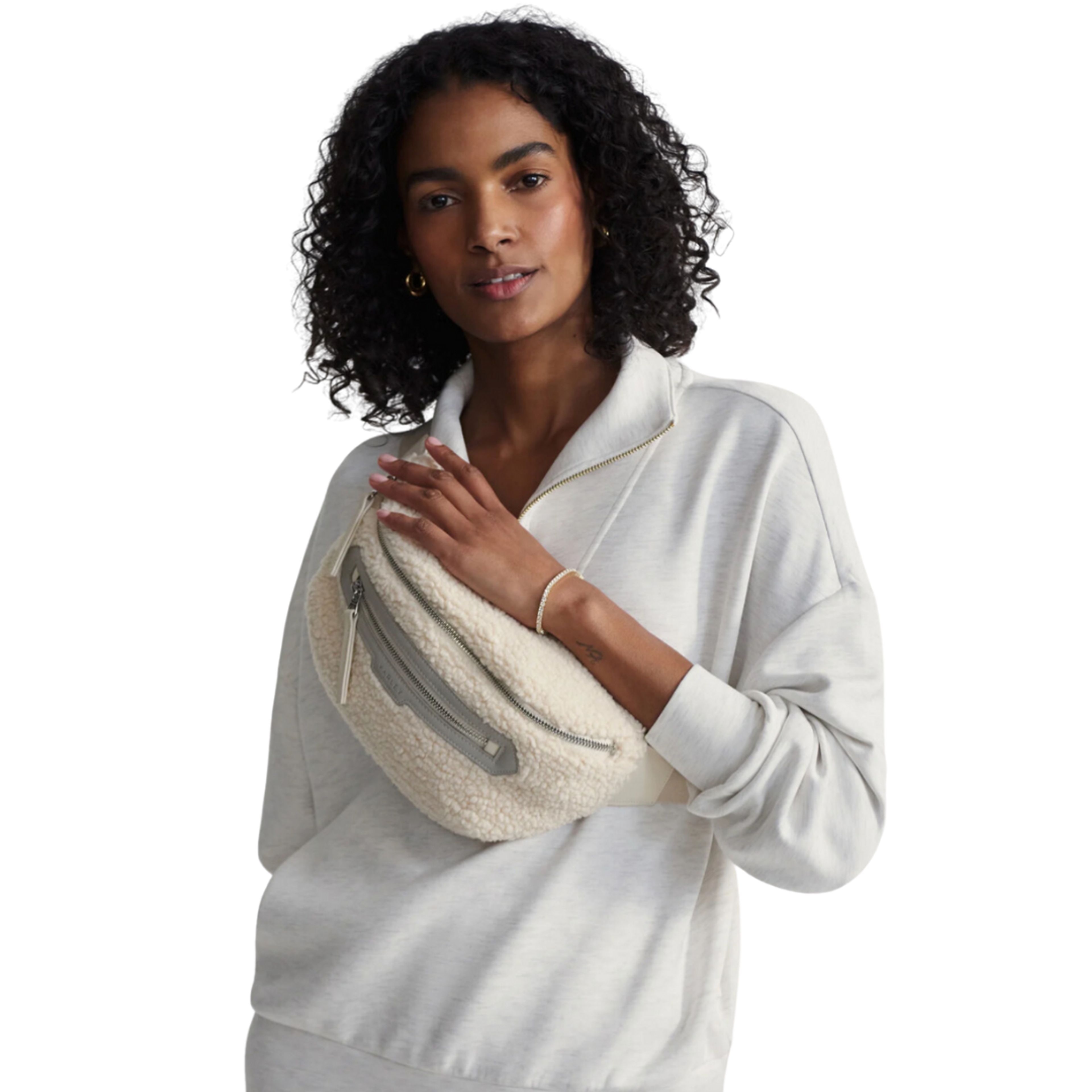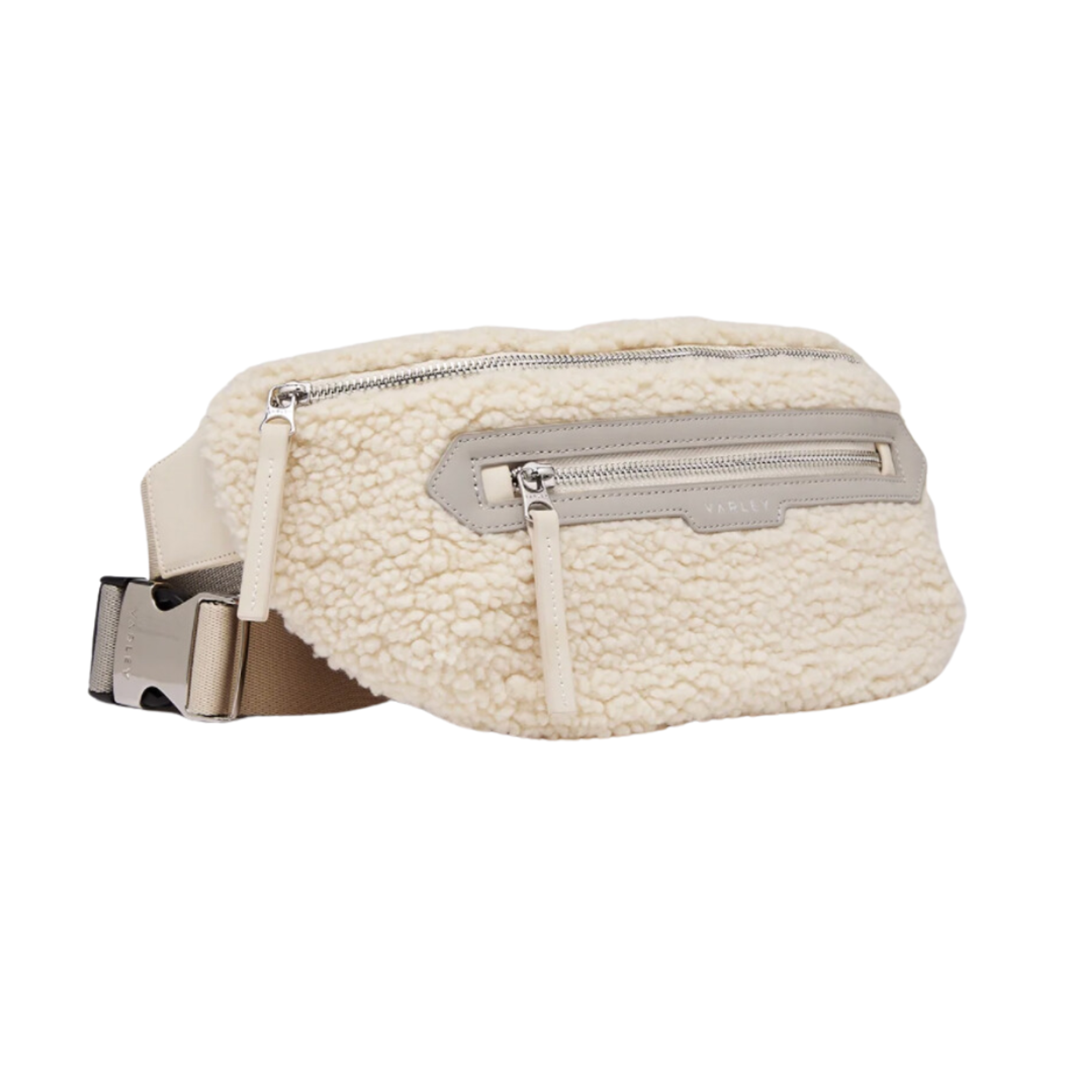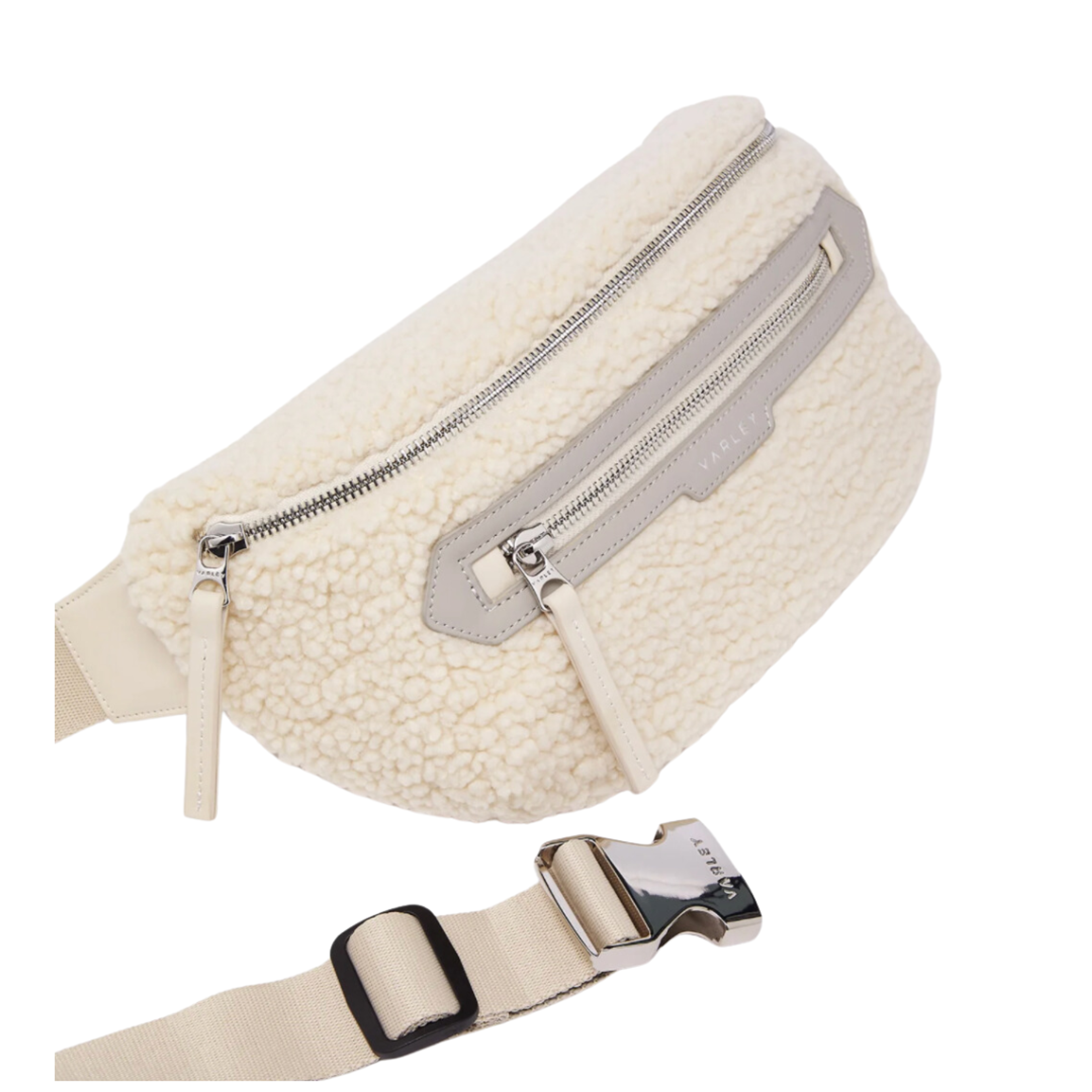 Inspired by the Lasson belt bag, the Kansa bag is crafted in warm, textured Sherpa, featuring a sleek webbing strap, multiple compartments, and branded buckle and zipper details for a modern look. A cool-weather twist on an everyday essential, keep your valuables close with the Kansa Sherpa belt bag.